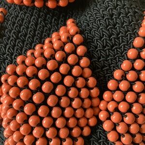 • strong colorful orange beading on black crochet
