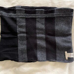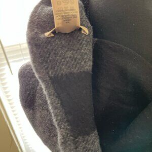 I did not wear this ever but washed in lavender soap. Basically new. so soft feels like cashmere. this is a loop- snood, roughly 12 inches. Black and gray textured. Price firm.No offers.