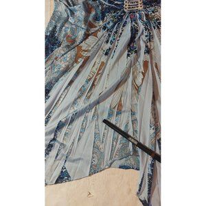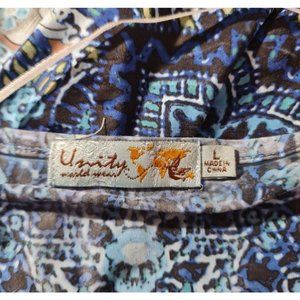 unity world mean Womens Asymmetric Hem Tank Top Flowy Size L Blue Floral B6P