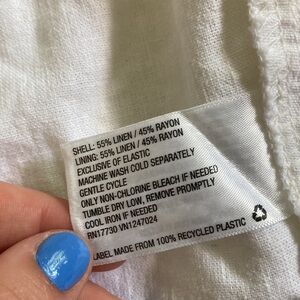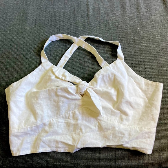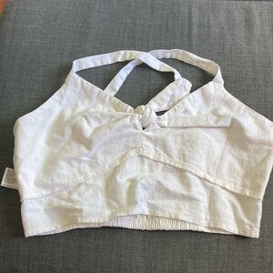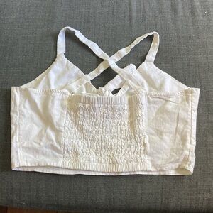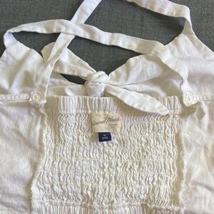 linen tank top with a smocked back panel, button-adjustable straps, and a knot in the front. never worn, NWOT.