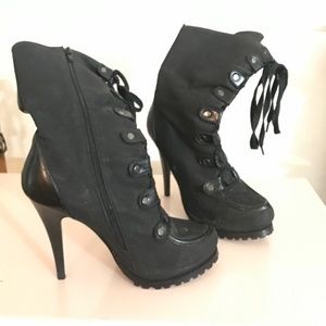 black mid calf high heeled boots ; more information and/or photos available upon request
