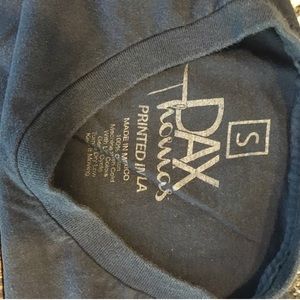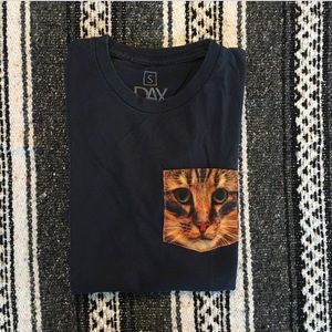 navy blue urban outfitters front pocket cat tee. one hole in the shoulder.