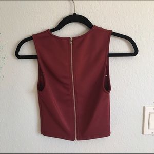 thick fabric crop top with super cute cut outs. zipper in the back. worn once and loved it.