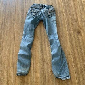 Do you think you could take a closer picture of the back pockets? Also do you happen to know the length of the jeans