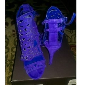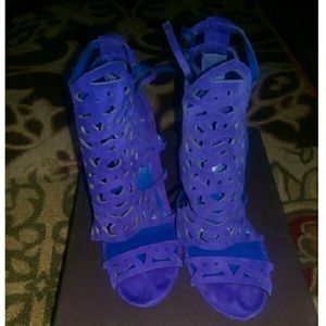 These suede, beautiful royal blue, 4 inch heel sandals from designer Brian Atwood are in immaculate condition.
