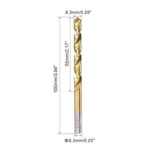 uxcell 6.3mm Drill Bits High Speed Steel Straight Shank 100mm Length Twist Drill Bit Fully Ground Titanium Coated 2 Pcs