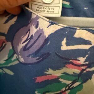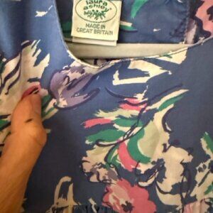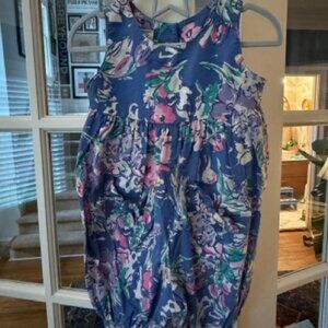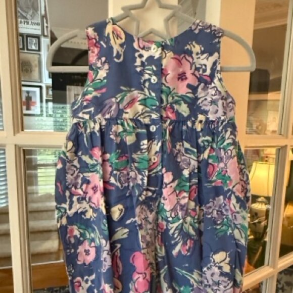 Adorable blue floral jumper with bow tie pockets and snap opening at bottom. Back has buttons at the top. True vintage laura ashley. Size 2 -2.5 years