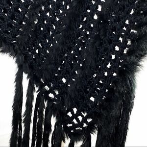 NWT. Black poncho hand knitted and trimmed with original rabbit fur. Tassel-like fur on back.