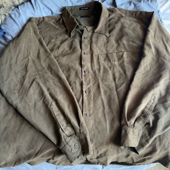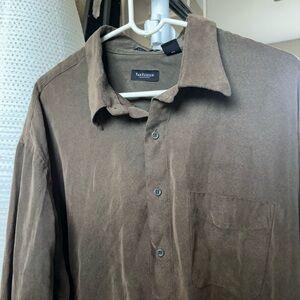 van heusen dress shirt Soft Suede Size XXL Brown 18-18 1/2 NWOT Button Up Pocket