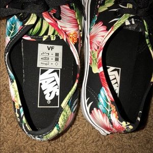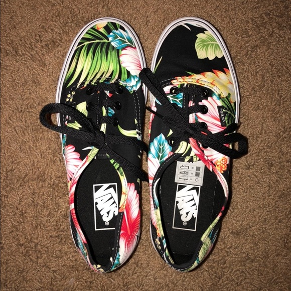 New without tags, never been worn Vans. they are black with tropical flowers on them, a size 6 but RUN BIG, I typically wear a size 8 but these fit perfect. Excellent condition