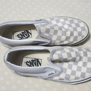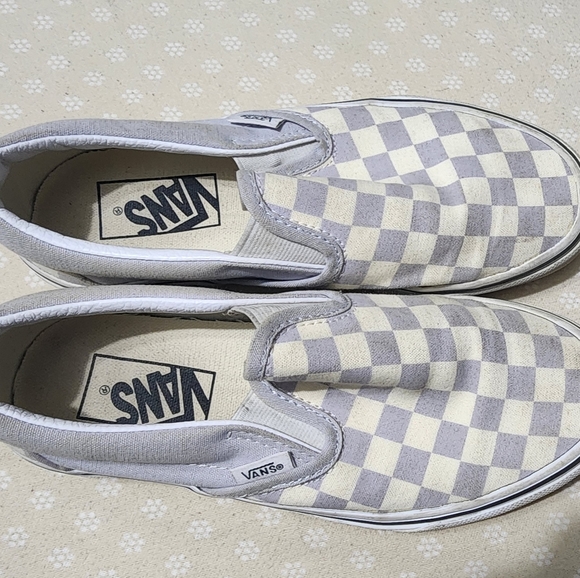 purple/grayish checkered vans in size 5.5