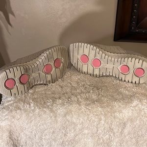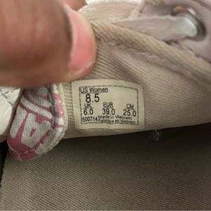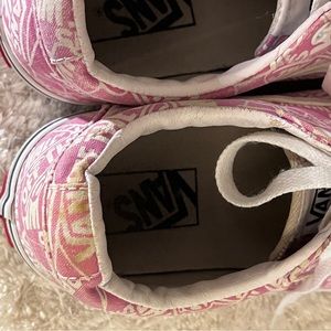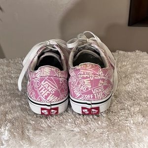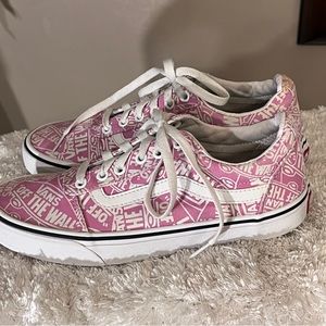Woman, vans and white and pink with the writing saying off the wall size 8 1/2 gently used