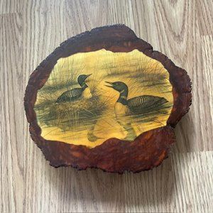 varnished vintage log wood wall plaque two birds thick