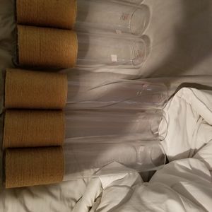 3 of them are 15.88 x 3.13 in partially wrapped in twine. (These are the tall vases) 17.99 new