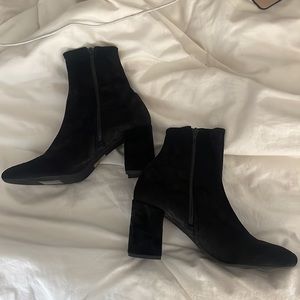I only wore these once ! Velvet material & pointed/ square toe. about 3 1/2 in heel