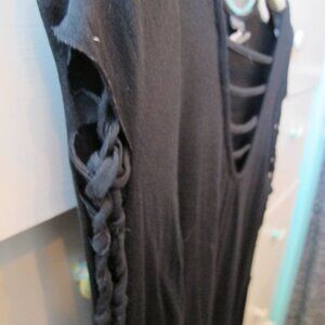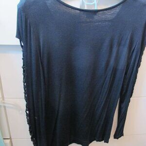 venus Black long sleeve top with arm cut outs and sexy neckline size medium