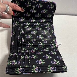 vera bradley RFiD riley compact wallet floating plum pandies performance twill New