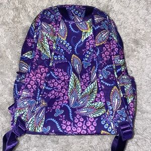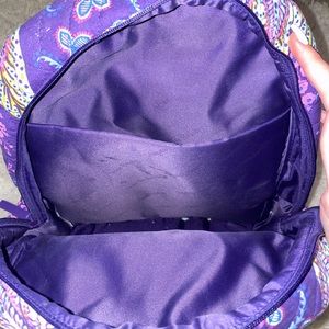 great condition! perfect for school with padded laptop pocket. 3 zippered pockets and beautiful purple design