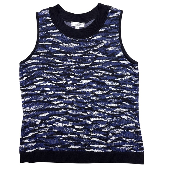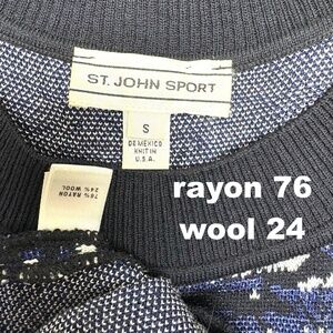 vest top ST JOHN vintage S blue black rayon wool knit pullover classic boho goth