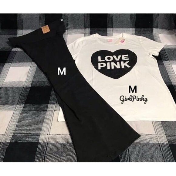 victoria secret PINK flare foldover leggings WITH LOGO TEE SIZE MEDIUM