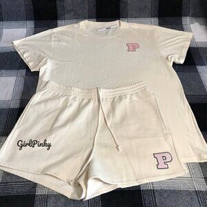 victoria secret PINK shorts OUTFIT IN WHITE SHELL LIMITED EDITION SIZES M-XXL