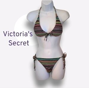 victoria's Secret Neon Striped Bikini With Ruched Bottom