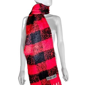 soo plush extra cozy oversized blanket scarf in check patter. features brand patch