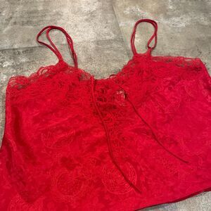 victoria’s secret vintage gold label red lace cropped fairy cami. size large excellent condition see measurements. :)