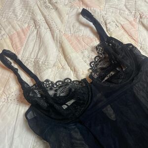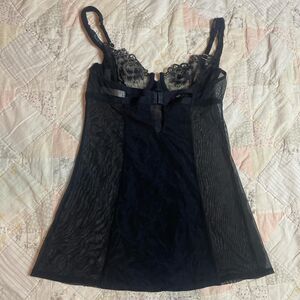 victoria’s secret vintage y2k 2006 sheer emo whimsy goth babydoll chemise bra top with bustier underwire and lace cups. size 34b see measurements. :)