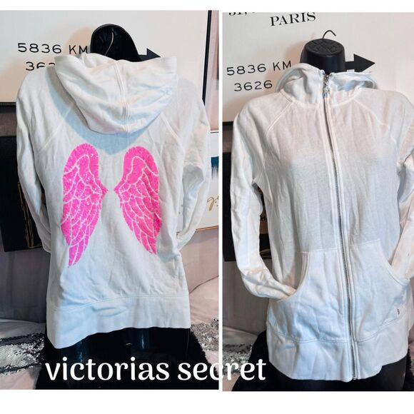 victorias vs victorias secret pink white hot pink zip up angel wings hoodie S