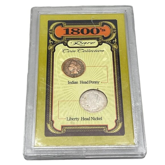 This rare vintage coin collection features an 1893 Indian Head penny and a Liberty Head coin, perfect for collectors seeking unique historical items. Enhance your collection with this valuable piece from the 1800s, a must-have for enthusiasts and numismatists alike.