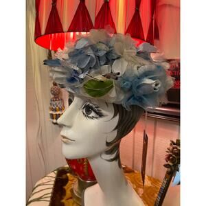 vintage 1950s blue flower hat modern miss 50s fashion easter wedding pillbox