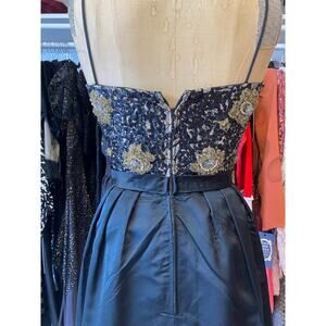 vintage 1960s black silk beaded maxi dress 60s formal gown metallic eyelash xs