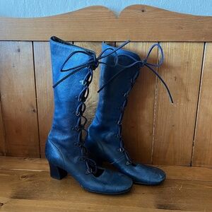 vintage 1960s blue leather Penny Lane mod Victorian go go lace up heel boots 5.5