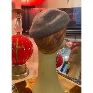 vintage 1960s charcoal gray wool beret 60s hat by Penny bow timeless french