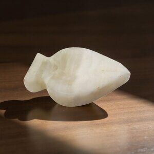 Add a touch of retro elegance to your space with this vintage 1960s hand-cut marble ashtray, featuring a unique spade shape. Perfect for collectors or as a stylish decor piece. 3.5"H x 2.5"W