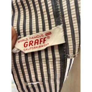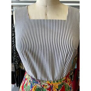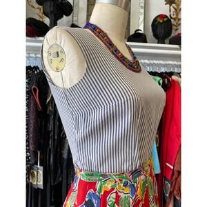 vintage 1960s pinstriped sleeveless top button back chambray white seersucker 34