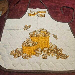 vintage 1970 quilted apron mushroom design includes potholder with same design