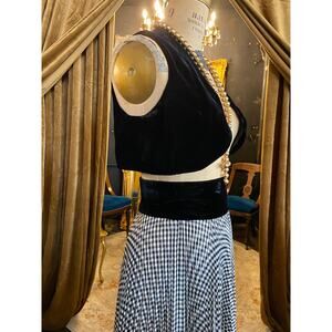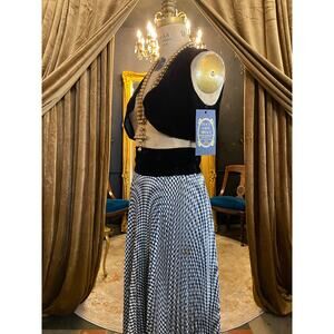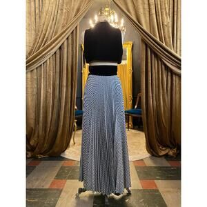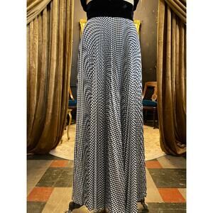 vintage 1970s 2 piece maxi skirt and cropped vest, accordion pleat gingham, xs