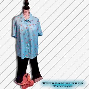 Retrosaurusrex Vintage; vtg; 70s; 1980; 80’s, Blouse, shirt, top, mod, flower; smock; button down; 2x; casual; summer; plus size; volup; Calico, cottage core, retro; xxl; 1x; swing ; indie; fairy; grunge