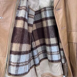 vintage 1970s men’s leather jacket by Gary Gordon Outerwear, pockets, button closures, detachable plaid lining