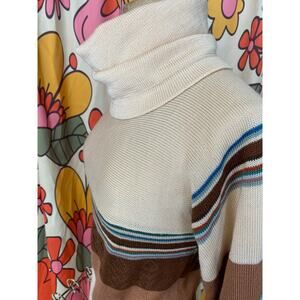vintage 1970s striped turtle neck sweater s/m vicki volts drawstring boho hippie