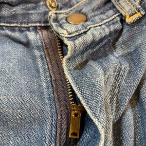 Some stains visible in front and back, wear and hole inside legs, but otherwise good.