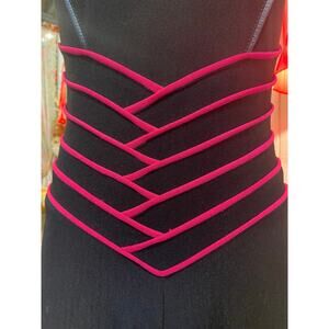 vintage 1980s black stretch jumpsuit and cropped jacket magenta chevron club xs