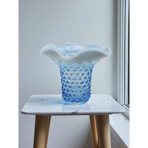 vintage 1980s fenton style blue,white glass hobnail vase
