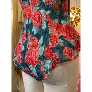 vintage 1980s victorias secret teddy red and green rose tap short one piece
