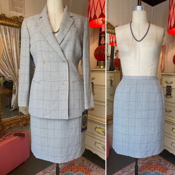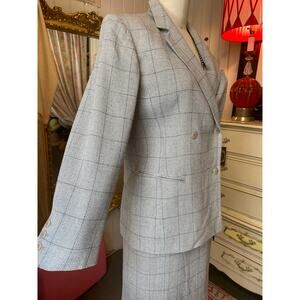 vintage 1990s Ungaro gray plaid womens suit double breasted jacket med 6 skirt