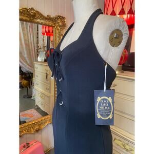 vintage 1990s halter neck black bandage dress lace up karen lucas hourglass body