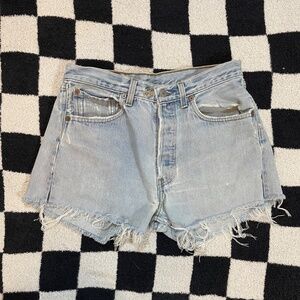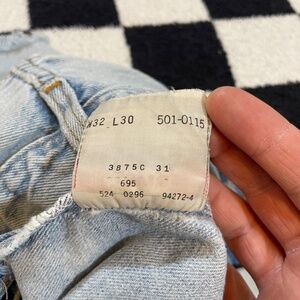 vintage 1990’s levi’s 501 button fly upcycled american groove 32” waist cut off