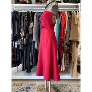vintage 1990s red silk strapless dress a-line bow waist size small y2k gilmore